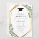 Invitation Graduation géométrique de l'or Eucalyptus vert rus