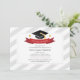 Une carte moderne d'invitation à la remise des diplômes avec une casquette noire à gossel jaune, une bannière rouge et un motif chevron gris et blanc. Customisez facilement cette carte en cliquant sur le bouton "Personnaliser" ci-dessus. Nous avons des accessoires assortis et d'autres cartes de graduation disponibles dans notre magasin.