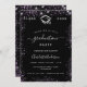 Une invitation moderne et élégante à la remise des diplômes. Un arrière - plan noir décoré de poussière de parties scintillant violette et violette. Personnalisez et ajoutez un nom, une année et des détails.