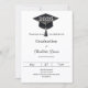 A modern and stylish black and white invitation for a graduation party. Decorated with a black graduation cap. Personalize and add a name, and the details.