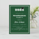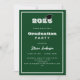 Une invitation moderne et design à la remise des diplômes. Pour lui et elle. Arrière - plan vert, texte blanc et cadre. Une casquette noire de graduation.
