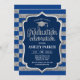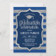 Invitation à la fête de fin d'études pour hommes ou femmes. Elégante carte invitation en bleu marine et argent. Design simple et moderne avec des rayures, un casquette, faux parties scintillant argent et typographie script. Idéal pour une célébration élégante de remise des diplômes. Invitations Zazzle imprimées ou téléchargement instantané modèle imprimable numérique.