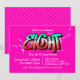Une invitation graffiti rose vif désordonné idéale pour un enfant de huit 8 ans.