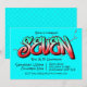 Une invitation graffiti bleu néon lumineux et désordonné convenant à un enfant de sept 7 ans.