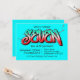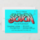 Une invitation graffiti bleu néon lumineux désordonnée adaptée pour un enfant de sept 7 ans.