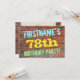 Ce design amusant d’invitation à la fête d’anniversaire comporte un message comme "FIRSTNAME’S 78th BANTHDAY PARTY!", où le nom peut être personnalisé, sur le devant. L'arrière - plan est représenté par un mur en brique composé de briques de couleur rougeâtre. Le texte de message personnalisable sur le devant présente des couleurs comme le bleu, le jaune et le vert, et il a un aspect inspiré de celui des graffitis peints. Le verso comporte un message personnalisable qui pourrait inclure des détails pertinents sur la fête d'anniversaire. Des invitations à des fêtes d'anniversaire comme celle-ci pourraient être une façon amusante pour la famille et les amis invitations d'une fête d'anniversaire organisée pour quelqu'un qui célèbre son soixante-dix-huitième anniversaire. [~Z0000287]
