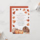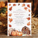 Accueillez vos invités à un mariage automnal rustique avec cette charmante invitation, mettant en vedette une grange confortable, des citrouilles et un délicieux assortiment de feuilles d'automne et de glands sur un fond blanc cassé croquant. Les tons chauds et terreux ainsi que les éléments naturels simples évoquent la beauté sereine de la saison automnale, ce qui fait que ce design est parfait pour une célébration à la campagne. Cette invitation capture l'essence du temps des récoltes, idéale pour les couples qui recherchent un thème élégant mais rustique pour leur jour spécial.