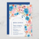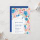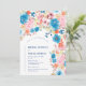 Audacieux Boho bleu rose sauvage arc fleuri nuptiale invitation avec jolie couleur peinte à la main de l'année bleu mariage, avec rose, orange audacieux et couleurs vives avec vert clair et vert sage avec feuille brune en forme d'arc. Fête de mariée parfaite pour toute la saison et parfaite pour le printemps et l'été avec ces teintes vibrantes et une touche rétro.