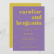 Gras brillant violet et jaune typographie Faire-part de mariage moderne