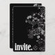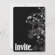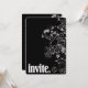 Bordure florale blanche contemporaine sur noir avec lettrage audacieux pour invitation.