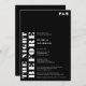 Gras simple blanc sur le mariage noir dîner de répétition avec la nuit avant écrit en gras surdimensionné police. Idée mariage de répétition parfaite.