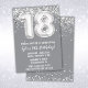 Gray Silver 18th Birthday Party invitation 18 anniversaire invitation pour un garçon ou une fille avec l'écriture de script moderne et des ballons de papier amusant.