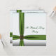 Elégante crème d'ivoire enveloppée dans des rubans de satin vert émeraude avec garniture de bijoux en or invitation St. Patrick's Day. Ajoutez vos détails à l'avant et à l'arrière en choisissant simplement le bouton orange "Customisez-le !" pour commencer à ajouter vos détails d'événement, le style de police, la taille et la couleur de police et le libellé. Veuillez noter que tous les modèles d'invitation que vous trouverez sur Zazzle sont des graphiques imprimés sur papier plat stock sans bijoux, arcs, surélevés, gaufrés, ou pièces ou pièces ajoutées.