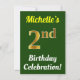 Invitation Green, Faux Gold 2e anniversaire Célébration + Nom