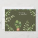 Une invitation avec du lettrage blanc sur un arrière - plan vert et avec beaucoup de plantes verts et des lignes de drapeau. Conçu pour une fête dans le jardin en été. Entièrement personnalisable des deux côtés.