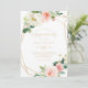 Cette invitation de fiançailles élégante géométrique et dorée est parfaite pour une simple fête de fiançailles. Le design est composé de roses blancs, roses et roux peints à la main et d'une touche de verdure, ornant des cadres géométriques dorés, inspirant la beauté artistique.