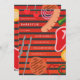 Ceci est une invitation à une fête de barbecue amusante et unique, parfaite pour un anniversaire, une célébration du 14 juillet, la fête du Travail et un barbecue dans le jardin. L'invitation présente un barbecue avec un certain nombre d'objets que l'on trouve couramment dans les barbecues tels que des saucisses, des tomates cerises, un steak haché, un steak, des rondelles d'oignon, du maïs, des poivrons et une pince.