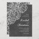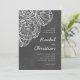 Faire-part de mariage moderne avec des fleurs de pavot à contour blanc sur un arrière - plan texturé gris charbon.