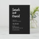 Célébrez vos noces à venir avec cette faire-part de mariage simple Elégante en noir et blanc. Le design propre et moderne présente les noms du couple dans une belle police. C’est la façon idéale de donner un ton sophistiqué et ludique à votre célébration mariage. Cette invitation à plat polyvalente avec taille : 5 po x 7 po est facile à customiser avec tous les détails de votre événement. Le texte en noir gras sur un arrière - plan blanc immaculé garantit que toutes vos informations sont faciles à lire. Que vous planifiez un dîner intime ou un grand rassemblement, cette invitation est un choix intemporel qui ravira vos invités. Groom Bride moderne noir et blanc faire-part de mariage carré Type de papier Signature Matte