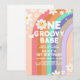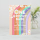 Invitation Groovy One boho daisy rainbow premier anniversaire