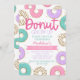Invitation à la fête d'anniversaire pour enfants sur le thème des beignets dans des couleurs pastel sucrées avec accents de parties scintillant or