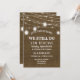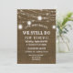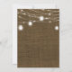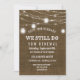 Faire campagne, faire des invitations de renouvellement de vœux de mariage avec lumières de jarres de maçon - Aspect toile de jute rustique et vieilli. Le dessus est orné de lanternes de jarres de maçon rustiques et de guirlandes lumineuses extérieures romantiques. Porte l'inscription "Nous faisons toujours" en lettrage de style western avec "Renouvellement de vœux" en dessous et l'année d'anniversaire de mariage au-dessus en lettrage courbe. Les détails de la fête d'anniversaire, y compris les informations de RSVP, sont en dessous. Le dos comporte des lanternes assorties et un fond aspect toile de jute. Remarque : Toutes les images sont imprimées. Utilisez le bouton Personnaliser pour changer quoi que ce soit - styles de police, tailles, couleurs ou placement. Invitations champêtres chic pour une fête d'anniversaire de mariage rustique