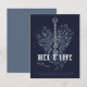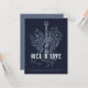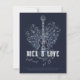 Cette carte d'invitation fédtivale de musique bleu foncé présente un croquis d'une électro-guitare placée devant un coeur de notes musicales. Vous pouvez customiser le nom et les détails du festival.