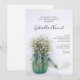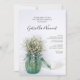 Invitez les invités à célébrer les jeunes mariés le matin après leur cérémonie de mariage avec la jolie carte d'invitation pour le brunch de mariage Blanc Baby's Breath dans un vase bleu. Cette charmante invitation personnalisée avec une photo de fleurs champêtres représentant un jar rustique en verre bleu rempli de fleurs de baby's breath ou Gypsophila paniculata avec du satin blanc. Une parfaite source d'inspiration pour une célébration de fête de jardin d'été.