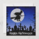 Illustration d'Halloween avec décoration de sorcière et de pierre gravée à pleine lune dans cadre de grunge