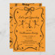 Black and Orange Whimsical Hand Drake Skeleton Bow Frame Halloween Party Invitation