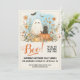 Invitations amis et famille à une fête d'Halloween festive avec ce design charmant avec un fantôme amical, chat noir et citrouilles entourés de fleurs d'automne. Le style aquarelle et les couleurs douces de l'automne créent une atmosphère confortable et non effrayante, idéale pour les fêtes d'enfants. Une option sucrée pour tous ceux qui veulent une invitation d'Halloween mignonne et accueillante.