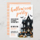 Invités Invitations à votre soirée costumée annuelle d'Halloween avec cette invitation ludique et facile à customiser. Le texte actuel est défini pour un événement réservé aux adultes, mais vous pouvez le personnaliser pour convenir à n'importe quel type de célébration. Le design se décline en noir et blanc, avec un mélange de polices propres et de polices de caractères pour un look élégant. Au fond, une maison hantée noire est agrémentée de citrouilles orange vif et de jack-o-lanternes, tandis que des fantômes et des chauves-souris ludiques complètent la scène éffrayante. Le dos de l'invitation présente un motif rayé orange et blanc, mais vous pouvez facilement changer la couleur arrière - plan ou les rayures pour correspondre à votre style. Parfait pour ajouter une touche festive et amusante à votre rassemblement d'Halloween ! Invitation annuelle de la fête du costume Halloween Haunted House. Disponible sous forme d'invitation imprimée ou d'invitation numérique téléchargeable que vous pouvez envoyer par e-mail ou avoir imprimé localement !