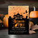 Invitation Halloween orange moderne et noir hanté