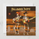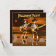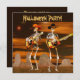 Drôle invitation de fête d'Halloween avec mon 3d dessin d'ordinateur de deux squelettes portant des casquettes cowboy jouant de la guitare dans un cimetière. Customisez l'exemple de texte à vos préférences.