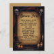 Deux crânes au sommet d'un cadre en bois et des bougies au fond créent une élégante invitation à la fête d'Halloween.