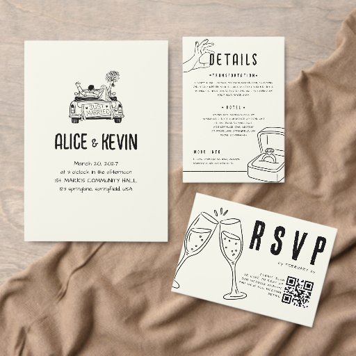Invitation Hand Drawn Illustration Ivory Minimalist Wedding