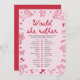 Invitation Hand Drawn Would She Rather Bridal Shower Game