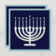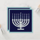 A whimsical menorah in circles of blue and green makes a welcoming invite to your hanukour kah celebration.