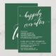 Voici un choix amusant et simple pour vos besoins de célébration post-mariage. Sur un fond uni modifiable, j'ai placé un graphique typographique qui indique "happily ever after" avec une police script élaborée ornée de cœurs. En dessous, vos informations apparaissent dans une police simple en majuscules. Utilisez les champs du modèle pour ajouter vos propres informations et cliquez pour personnaliser davantage si vous souhaitez apporter d'autres modifications. Toutes les couches sont déverrouillées pour vous permettre de contrôler le positionnement et la taille comme vous le souhaitez.