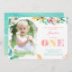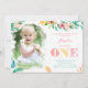 Carte photo couleur d'aquarelle Luau 1er anniversaire invitations pour la célébration de votre petite fille
