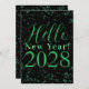 Invitation Hello New Year! New Year's Eve Green Black Sparkle