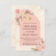 Un cadre en arche et une impression de marbre rose gold en fond. Décoré de fleurs, de roses et d'herbe des Pampas rose gold et rose. Personnalisez et ajoutez un nom et des détails.