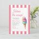 Perfect for any age! This Here's the Scoop invitation is ideal for ice cream birthdays. Unlike generic invites, this retro pink and white stripes design works for kids and adults’ summer parties.