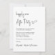 Élégant salon ou faire-part de mariage privé et invitation de mariage avec "Happily Ever After Party" dans un script moderne chic. Personnalisez facilement votre faire-part matrimoniale et votre invitation et ajoutez vos noms dans un script signature. Au verso, téléchargez votre photo et entrez l'adresse de votre site Web mariage pour créer un code QR que vos invités peuvent scanner sur RSVP en ligne et obtenir des détails supplémentaires.
