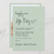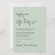 Élégant étage vert sage ou faire-part de mariage privé et invitation de mariage avec "Happily Ever After Party" dans un script moderne chic et vos noms dans un script signature. Au verso, téléchargez votre photo et entrez l'adresse de votre site Web mariage pour créer un code QR que vos invités peuvent scanner sur RSVP en ligne et obtenir des détails supplémentaires.