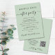 Élégant salon vert sage ou faire-part mariage privé et réception de mariage ou invitation de fête de célébration. "Happily Ever After Party" est écrit dans un mélange de typographie simple et d'un script élégant avec des swashes. Personnalisez votre faire-part de mariage et votre invitation à la réception et ajoutez vos noms dans un script signature. Au contraire, entrez l'adresse URL de votre site Web mariage pour créer un code QR pour que les invités puissent scanner tous les détails et à RSVP en ligne.