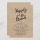 Planifier un brunch avec les jeunes mariés le lendemain du mariage ? Invitation vos invités bien-aimés avec ce thème "Brunch avec les jeunes mariés", dans le design rustique moderne de script (noir et blanc, arrière - plan de bois brun cottage), indiquant la date, l'heure, le lieu, hébergé par, et RSVP détails.