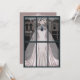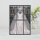 Parfait pour toute mariée avec charme féminin et style vintage. Une belle robe de mariée sirène à peine rose dans une vitrine de magasin vintage chic, l'intérieur de la carte représente l'intérieur du magasin, la robe et le voile ayant été retirés du mannequin et emballés dans de grandes boîtes roses avec des rubans roses. Idéal pour la mariée, les félicitations de fiançailles ou les événements liés au mariage.