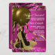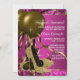 Elégante parties scintillant noir, rose chaud et or chaussures talon haute femme de 30e 40e 50e 60e 70e 75e anniversaire modèle d'invitation à la fête. L'élégante invitation de fête d'anniversaire rose vif de cette femme est facilement customisée pour votre fête ou événement en choisissant simplement le bouton "Customisez-le !" pour commencer à ajouter vos détails d'événement, le style de police, la taille et la couleur de police et le libellé. Veuillez noter que tous les modèles d'invitation que vous trouverez sur Zazzle sont des graphiques imprimés sans bijoux, arcs, surélevés, gaufrés, ou des pièces ou pièces ajoutées.