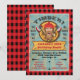 Super pour le mec viril ! Invitation de fête de bûcheron avec un grand bûcheron barbu, des haches, du bois coupé sur un fond de flanelle. Idéal pour un anniversaire, une retraite, un enterrement de vie de garçon, un événement important ou toute fête virile. Illustration dessinée à la main par McBooboo. Veuillez me contacter à tkatz@me.com pour tout problème